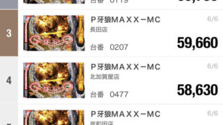 昨日の出玉ランキング(マルハン系列)