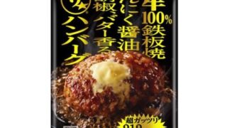 正確には牛100%鉄板焼にんにく醤油、黒胡椒、バター香るザ☆ハンバーグを今からレンチンして食います ...